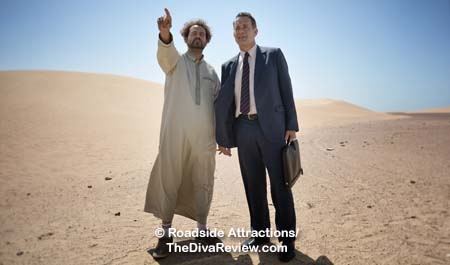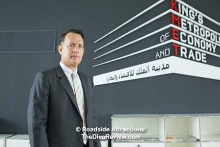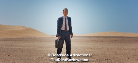 Tom Tykwer: Well, there are, but they are inherent to the film, right? I mean, the whole idea of this guy in this business suit in the middle of nowhere, standing there in the middle of the desert and nothing around him, and he’s supposed to do big business is actually crazy enough that you don’t have to add much to the image once you have it. Once you have Tom Hanks standing there in the middle of the sand, I think it’s the only way to go, really. It’s a really, really powerful image that I felt like we can build on, we don’t need to fuel it too much. There’s a different energy about the film that doesn’t look for a lot of crazy, fun filmmaking moments because the story itself is already twisted.