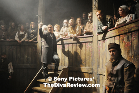 Rhys Ifans: Well, I’ve always been aware of the so-called authorship question. Because quite frankly, there is no absolute, concrete evidence as to who the author of these works is. I was kind of aware of the {Francis} Bacon theory and the {Christopher} Marlowe theory, but having been offered this part, I obviously had to research {Lord} Oxford a great deal, and Oxford’s life is very, very well documented; much more so than William of Stratford, certainly. And in reading Shakespeare’s work you have to accept that whoever penned these plays would have to have been well-traveled, would almost certainly had to have been a multi-linguist, and without a shadow of a doubt would have to have had a unique insight and knowledge into the workings and political dynamics of a very secretive, paranoid Elizabethan court. Edward de Vere ticks all those boxes. William of Stratford, on the other hand, doesn’t. Do I believe it was Edward de Vere? I’m not a hundred percent convinced. All I’m convinced of is that whoever wrote these works was a genius and I think it’s our duty as actors, directors and spectators to question or offer possibilities as to who wrote these because that can only illuminate the plays in a different way. And also I think whoever wrote these plays, we owe it to him, or her, or them, to ask this question. It would be a crime not to.