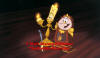 tightly-wound butler in the form of a clock called Cogsworth, a jolly