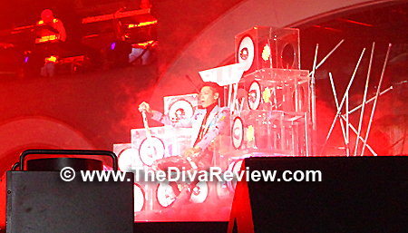 began with T.O.P. seated on a throne of fiberglass speakers, with
