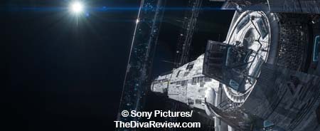 a shuttle heading to the space station, Elysium, a man-made paradise,