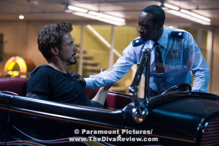 the audience’s conjecture about his replacement of Terrence Howard as "Rhodey" Rhodes with his opening salvo to Stark, “Look, it’s me. I’m