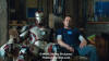 Miguel Ferrer as the Vice-President, patting the back of the robotic War