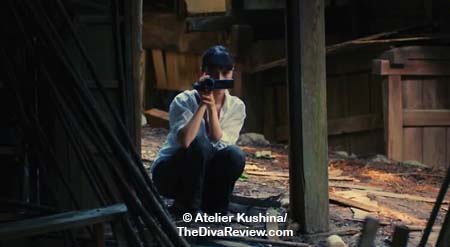 LMD: Director, you not only directed KUSHINA; you were the writer, art director, costume designer, and editor. Was that your preference, or was it how it worked out? How did you know your decisions were right? MH: My taking all of those roles within the film was for both reasons; in that because I do trust my own intuition, and therefore, I wanted to do what I felt was necessary, what I wanted within the film. But then there was, obviously, the budget side, as well, that constricted whether we can hire certain staff, or not. So, it was a bit of both. And regarding clothes, and the art direction; it was about building the environment together, also with my actors. In fact, sometimes people cut the clothes, or changed the clothes a little bit. Sometimes the actors themselves did the clothes, as well, in that way. TH: We, as actors, decided that we wanted to do whatever Hayami-san wanted to do. This wasn’t something that the actors all decided together, but we all felt that we would just do whatever she wants, and we weren’t going to question those things. And it worked out very well that way, that everybody felt that way. MH: With Muramatsu-san, we had a lot of good communication going between the two of us. Therefore, I could leave the set and location to him, while I took care of other backstage necessities, whether that was costumes, or art direction, things like that. And I do feel that this film was created with the two of us working as a close team.
