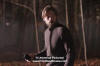 brunette boy-cropped wig and all black wardrobe. Young Lilly is played