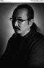 Playboy artist Patrick Nagel. Blue-black hair pulled into a wispy bun,