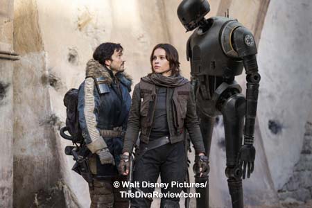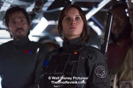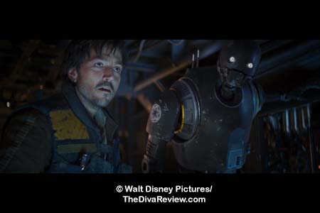 compassionate Jyn, Mexico’s Diego Luna as the conflicted Rebel, Cassian,