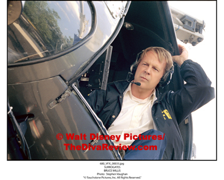nonporous skin, our first sight of Bruce Willis is a startling and