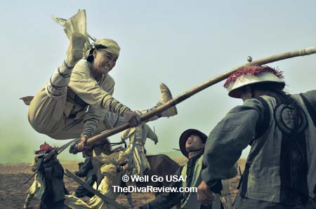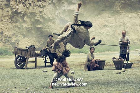 In the midst of an even battle, the military releases a secret weapon: A young peasant is called into the fray and doesn’t look like terribly much until a helpful friend cracks him on the head. That simple motion turns the man into much, much more. Watching “The Freak” in action, we understand that the phrase “one-man army” was clearly invented for this guy. His ability to plow through an entire garrison of fighters is invaluable to his generals, so when The Freak is put out of commission it is a grave blow to the troops. An elderly doctor forces the savant - otherwise known as Yang Lu Chan - to open his eyes and see how the damage he’s doing to the enemy is being reciprocated; his magic horn, a growth of flesh on his scalp that when struck transforms the boy into an unstoppable martial arts machine, is turning black. For Yang to go on with his whirlwind mode of battle means certain death. The doctor advises the young man to try another way and train to fight with a tai chi master hidden high in the mountains. Unfortunately for the eager would-be student, the clan to which the master belongs is notoriously secretive and does not allow its fighting method to be taught to outsiders. The Freak will not be dissuaded and doesn’t care how many times or how increasingly violent the refusals becomes, he’s going to learn. While Yang goes about infiltrating Chen Village, they face a much worse invasion by one of their own. Fang Zi Jing has returned home from an education abroad full of new ideas to improve the life of his clansmen, but he cannot make his people get with the times enough to appreciate his modern inventions. He is rejected by the populace, who already looked down on him for having no tai chi skills. His spite for the old-fashioned folks boils over into full-blown betrayal as Fang plots with the government to annihilate the village to make way for a new railroad. Fang drives a huge locomotive - armed to the teeth and ready to plow - right up to the town gate. Even with their amazing martial arts abilities, can these simple people stand up against the giant, iron menace? Will The Freak get to learn tai chi before the village is destroyed? Right from the start, Tai Chi Zero’s raging opening battle sequence and animated credits make our main protagonist, “The Freak,” Yang Lu Chan, look like a superhero from a Japanese manga. Indeed, when the horn-like deformity on the man’s head is hit, the blow activates the already agile warrior into something like a Shaolin Super Saiyan over level 9000. Actually, video game effects, music and sounds play a big part in Tai Chi Zero; amplifying its fantastic wire-fu and CGI wizardry. Animation and superimposed titles provide a lot of humour and clever exposition; they’re used to announce the big Asian stars and real-life martial artists making cameos throughout, like actress Shu Qi and Infernal Affairs director, Andrew Lau, who appear as The Freak’s parents in a sepia-toned, silent film flashback. The onscreen captions also give the viewer helpful tidbits of info, like diagramming the various tai chi steps the village daughter, Chen Yu Niang and her neighbours use to defeat the indefatigable Yang time and again, and fills in some of the backstory: We know exactly how many unsuccessful attempts there have been by outsiders to learn the villagers’ tai chi. The gauntlet of masters sequence, where The Freak must conquer everyone from a lean, fit guardian at the gate, to an innocent-looking, pig-tailed grade-schooler in order to be let in to train is way too much fun. The fight choreography by the excellent Sammo Hung is brilliant, with the graceful, fluid tai chi movements a perfect and powerful counterpoint to the ramshackle mishmash of wild styles The Freak has assimilated over time. I know I’ll never look at old Chinese ladies doing their early morning tai chi moves in the park the same way again. Amidst pros like Tony Leung Kai Fai as The Freak’s mysterious benefactor, Angelababy as Yu Niang, Eddie Peng as Fang Zi Jing and Bruce Liang as the wise doctor, 2008’s Olympic wushu gold medalist, Yuan Xiao Chao (or Jayden Yuan in the credits) makes a good showing in his movie debut as the hapless, kung fu-obsessed hero. The only down sides of the story are relatively minor. The love triangle subplot between Yunian, Fang and the foreigner Fang hooked up with while overseas slows the film’s momentum. Yu Niang and Fang appear so perfectly matched at the beginning that the hapa interloper who followed Fang from Europe just seems in the way. Feng‘s attachment to the Western girl feels like a forced plot device meant to provide fuel for the inevitable sequel. Also, for a movie based around an era highlighting the West’s encroaching modernity into China, there’s not a tremendous show of technology but for the metal behemoth at the gate. Still, director Stephen Fung’s very cool use of contemporary special effects, music and editing is a welcome subversion of the current Chinese film industry’s seeming inability to produce any Wuxia movies that aren’t period pieces. Rolling with the post-modern audacity of a Stephen Chow movie, Tai Chi Zero uses a similar fourth wall-breaking technique that amuses both the audience simply there to see an entertaining action story and more die-hard Asian film fans who will appreciate this mix of the old with the new. Steam-powered by its energy and fun, the ingenious and clever Tai Chi Zero ticks along nicely, breathing fresh life into an old genre. On