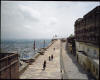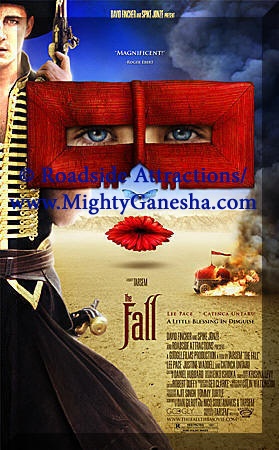 The Fall opens with a series of grainy black and white slow-motion frames of workmen straining over a bridge to pull a drowned horse from a river; the haunting textural images and layered score making the sadness of the act somehow epic and monumental. The scene sets our expectations for what we are about to see as the story gets underway. In sunniest California in the early part of the 20th century, a round-cheeked, bright-eyed cherub of a little girl called Alexandria makes her rounds exploring a hospital campus with a clipped wing. The brace supporting her broken arm juts out at an uncomfortable angle, but she pays no mind. On one such jaunt Alexandria comes across the supine figure of Roy, a Hollywood stuntman suffering from a broken back. A ruptured vertebra isn’t the only thing the young man ails from as we discover his injury originated in a failed attempt to win back a fading lover with a deadly leap off a bridge on horseback. With the blunt curiosity lost to anyone over the age of 10, Alexandria questions Roy about his injury. Roy deflects by tempting Alexandria with a different prize, spinning an epic tale of stolen princesses, evil potentates and a hardscrabble tribe of brave champions from around the globe. As the story grows, Alexandria’s involvement with both the tale and the teller deepens and many of the characters take after the people who surround the little girl in her real life, just as the direction of the story reflects the changes in Roy’s world. Alexandria soon becomes so enrapt by Roy’s cliffhanger that he is able to coax the unwitting girl to sneak around the hospital and steal the morphine he intends to use to end it all. Breathtaking, absolutely breathtaking is the level of pure artistry in this film. What Tarsem has done in his narration as well as in his visuals is give us grown-ups one of the truest views of life through a child’s eyes. We revisit the wonder of the world as it looked to us at the ripe old age of five {“I’m not a little girl, I’m five!” Alexandria scolds Roy}, as well as suffering some of the phantasmagoric nightmares and fears so terrifying at that age. The spectacular, dreamlike images of The Fall I would have never imagined as being possible to capture outside of an animated feature. The influence of many classic artists are displayed onscreen, Dali, Picasso, Magritte and Bosch to name a few obvious examples, while Tarsem’s own distinct aesthetics are given full reign. Some glorious moments are the underwater shot of an elephant swimming in slow motion in a cerulean sea. The landscapes of saffron deserts meeting cobalt blue skies; the spinning chandelier made of tied-together skinned rebels who attempt to over throw the evil Governor Odious rising up into the palace ceiling; the white-robed whirling dervishes who bear witness to the wedding of the crystal-clad princess. In a page out of Escher, the band of heroes has to find their way through an interminable maze of stairs, each seeming to lead endlessly into the next. The band of good guys are a wonderful mix of characters, each with their unique style and look courtesy of another brilliant artist, the great costumer Eiko Ishioka. Luigi, the explosions expert is decked in bright reds and yellows to match the flames emblazoned on his long coat. The noble Indian whose squaw was kidnapped by Odious is of the Asian variety in majestic jewel-coloured satin. The African slave with his helmet of towering gazelle horns resembles more a regal ebony sculpture than a flesh and blood man, and even Charles Darwin makes an appearance, dwarfed by a huge, fluffy faux-fur Vivienne Westwood-influenced white jacket that looks at though the Union Jack was spray painted on it. The main hero and the avatar of Roy himself, The Black Bandit wears a bolero-ish outfit that’s equal parts Zorro and Adam Ant. Our Damsel-in-Distress, Princess Evelyn’s lavish, beautiful outfits that take their cue from Japanese kimono, Erte, Marlene Dietrich’s Scarlet Empress uniforms and Cate Blanchett’s 1999 Oscar’s gown by Galliano. The locations are themselves another star of the picture; filmed in over 24 countries Tarsem takes familiar ground, Venice, Paris, the Taj Majal and manages to present those cities as well as African deserts and India’s marshes in new and innovative ways. For all its eye-popping beauty, The Fall’s real special effect is in the casting of then five-year-old Catinca Untaru as Alexandria. In one of the freshest, truest performances by a child actor, Untaru grabs the audience with her huge, ice-blue eyes and her adorable gap toothed grin – Tarsem uses her missing front teeth as part of the storyline. Her utterly natural presence is never measured or self-conscious, so much so one wonders if she was actually learning lines at all. Her accented English only increases her charm and she is the perfect representation of not only being a child that age, but what it meant to be a child that age. Her chemistry with Lee Pace as the tortured Roy is unforgettable. It’s obvious the two adored each other. Pace once again (after his recent turn in Miss Pettigrew Lives for a Day - click here for that review) proves why he’s deservedly one of the rising stars in Hollywood. Not only is he as handsome as the matinee idols of the 30’s and 40’s, a la Cary Grant or Gary Cooper, he’s also got the strong, steady presence of those MGM Studio ancestors. He captures the depression and heartbreak of a young vital man who may never walk again, who gave everything away for the faithless love of an unworthy woman. The sensitivity Pace shows in scenes where there clearly had to be some adlibbing between him and his young costar is remarkable and really holds the emotion of the film. Any complaint I had about The Fall (- besides being perhaps ten minutes too long) would stem from the relationship between Roy and Alexandria, after Roy betrays her trust and makes a little girl an inadvertent acc