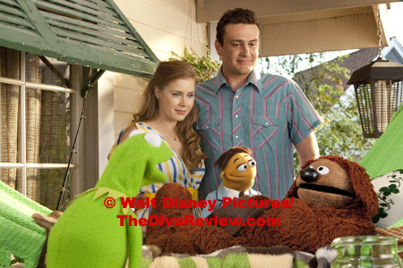 Non-puppet leads Jason Segel and Amy Adams as the wide-eyed, small town