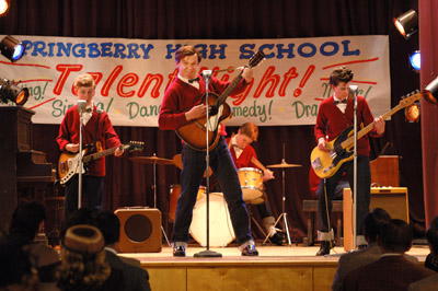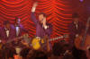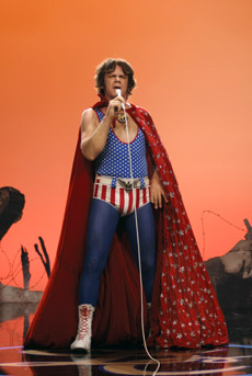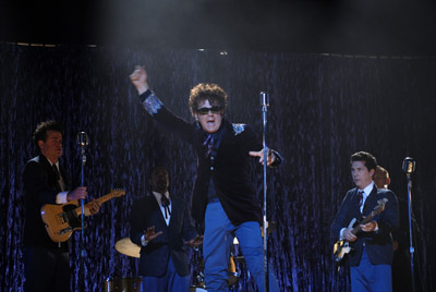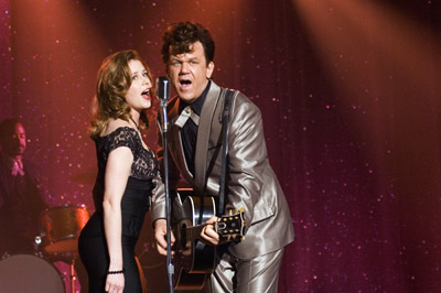 Walk Hard is a no-holds-barred spoof of recent musical biopics like “Ray” and “Walk the Line”. Dewey Cox, a poor country boy, is traumatised by a freak machete accident that cleaves his brother in half, left Dewey without a sense of smell and gained him the eternal enmity of his father, who can’t look at Dewey without reminding him that “The wrong kid died.” Visited by the spirit of his sainted bro, who tells him to be “Double-good for the both of us,” Dewey spontaneously leans to play the blues guitar and at an astoundingly mature 14 years old, single-handedly brings rock and roll (- and groupies) to his school talent show. Demonised and misunderstood, Dewey runs away from home, new family in tow (- “I think I’m doing pretty good for a 15 year-old with a wife and a baby”) and finds work in a black nightclub where people “dance erotically.” While covering for the club’s injured singer, Dewey is discovered by record company scouts. Within moments of pressing, Dewey’s self-penned anthem, Walk Hard, becomes a hit across the country, catapulting Dewey into stardom and finding him on tour with Buddy Holly and Elvis. Wide-eyed and naïve, Dewey falls prey to the temptations of the road with an escalating selection of drugs and many, many sex partners, until he meets his soul-mate in the angelic Darlene. Together they face the advance of years, changing musical styles, drug experiments, transcendental meditation and psychedelic animation with the Beatles, singing protest songs for the Midget Panther Party, recording sessions with Aboriginal tribesmen, didgeridoos and goats, and the purgatory of 70’s variety shows. Will the love of this good woman bear Dewey through the turmoil in his life? Will Dewey ever regain his sense of smell? Produced and co-written by Judd Apatow, Walk Hard’s comedy style owes more to 1980’s comedy-meisters David Zucker, Jim Abrahams and Jerry Zucker, than to his own recent hits, The 40-Year Old Virgin and Knocked Up. The rapid-fire sight gags and non-sequiturs of Walk Hard are more reminiscent of ZAZ’s Airplane, Top Secret!, or the Naked Gun films, and just as outrageous and off-the-wall. Apatow and co-writer and director Jake Kasdan aren’t afraid to go low for their laughs here and I appreciated that. Yet somehow, despite the presence of a hero of a most questionable I.Q. and moral standing (- “I’m locked in a custody battle, right now. Custody is being forced on me, which I don’t think is right”), gags that feature close-ups of male genitalia and even the very name of the film lending itself to prurient, childish giggles; the humour is surprisingly smart and fresh. Walk Hard takes its parody way out of the box and revels in its absurdity. Every music biopic cliché and sacred cow is joyfully slaughtered: Each scene with Dewey’s not-so-supportive first wife finds her with more and more babies hanging off her hips and though the Coxes can afford a menagerie including a giraffe and a monkey (- haven't you always wanted a monkey?), the first Mrs. Cox is ever-clad in a homespun sack with baby goo decorating her cheeks and her constant warning to Dewey that he’s “never gonna make it”. The montage of Dewey and Darlene’s overtly suggestive attempts at maintaining a platonic friendship; hopped up on his newly discovered pill-addiction Dewey invents punk-rock; and during his “Middle –Dewey” period, Dewey accuses Bob Dylan of ripping off his sound; Dewey’s tendency to take out his angst on whatever plumbing is available. Eddie Vedder earnestly introducing Dewey as “The Chameleon”, “The Changeling”, “The Shape-Shifter”, “The White Indian” and “The Tall Midget” as Dewey receives a “lifetime achievement award”. I can’t imagine what this film would have been without the brilliant performance of John C. Reilly. Is it wrong to say he becomes Dewey? Well, good or bad, there ya go, and he’s wonderful. His incredible handling of the rampant silliness of the character never becomes self-conscious or winking. Reilly throws his all into Dewey and makes him into a rock biopic version of Forest Gump going with the flow through all the eras and fads, costumes and hairstyles. For all Dewey’s transgressions - and they are endless – Reilly clearly adores this character and through his inhabitation of Dewey, we like him, too. I’m thrilled to see Reilly, who’s given so many quality performances over his career, get a great starring bid like this. The other thing I adored about Walk Hard was the fabulous soundtrack. Featuring songs written by Marshall Crenshaw, the Candy Butchers’ Mike Viola, Dan Bern, Apatow and Reilly, amongst others. Every song in the film is a gem and I arrived back at the temple singing them over and over. As we saw in 2002’s Chicago, Reilly’s got musical chops and that is essential for fleshing in our fictional rock n’ roll superstar, lip-synching wouldn’t have done it. He puts across the songs, replete with double-entendres and era-appropriate lyrics so well you can almost believe they could’ve been hits. Particular favourites are the toe-tapping “Darling” and "(Mama) You Got To Love Your Negro Man", and the mariachi swagger of “Guilty as Charged” that plays over a montage of scenes of Dewey’s first drug bust. Very little could’ve prepared me for the sight of Reilly sporting a blown-out 70’s shag on the set of Dewey’s variety television show, dressed in a silver spacesuit crooning a disco version of David Bowie’s Starman. The rest of the cast is equally brilliant; particularly Kristen Wiig, absolutely hilarious as Dewey’s unsupportive, hyperfertile 12-year old bride. The guest cameos need to be mentioned because they are truly inspired; starting with Frankie Muniz as a diminutive Buddy Holly. In case you aren’t sure who Muniz is supposed to be, you’re reminded with every line in his scene. Jack Black, Paul Rudd, Jason Schwartzman and Just