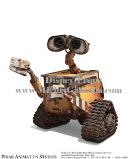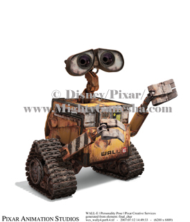 body and two tear-shaped goggle eyes. Wall-E dutifully carries out his